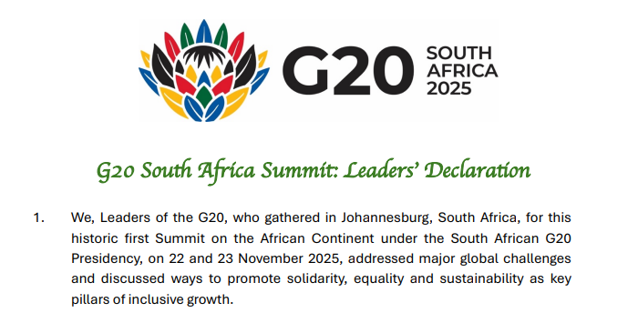 二十國集團(G20)領導人第二十次峰會當地時間11月22日在南非約翰內斯堡開幕。南非國際關系與合作部長羅納德?拉莫拉在當天下午召開的記者發布會上表示,與會各方已就會議核心議程達成共識,并通過了《二十國集團領導人約翰內斯堡峰會宣言》。