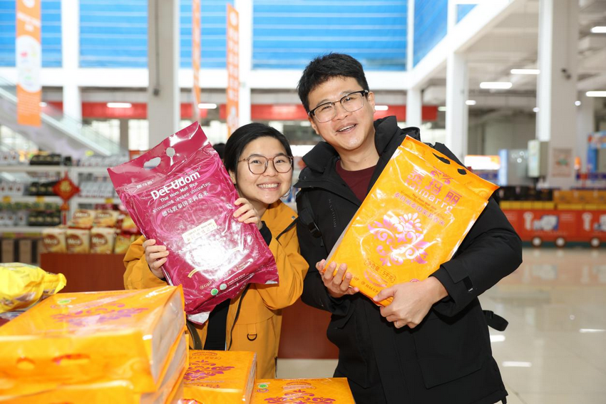 泰國網紅阿克夫婦在中歐班列進出口商品博覽中心看見泰國香米