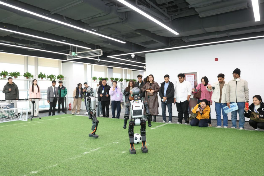 巴西網紅塞米看著精準踢球射門的機器人連連稱贊:“它們能疊衣服、做家務、沖咖啡,現在連足球都會踢,簡直無所不能!”