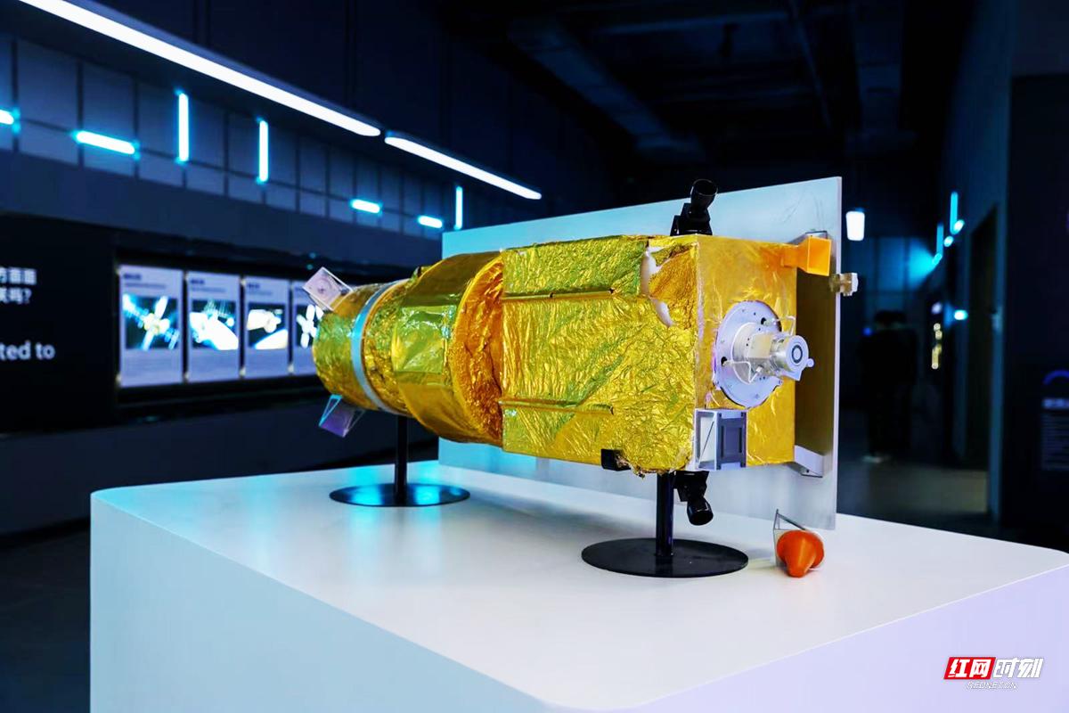 在湖南株洲北斗產業園的展廳內,一顆通體金黃的衛星模型靜靜地反射著燈光,多層隔熱材料包裹的機身閃爍著金屬光澤。