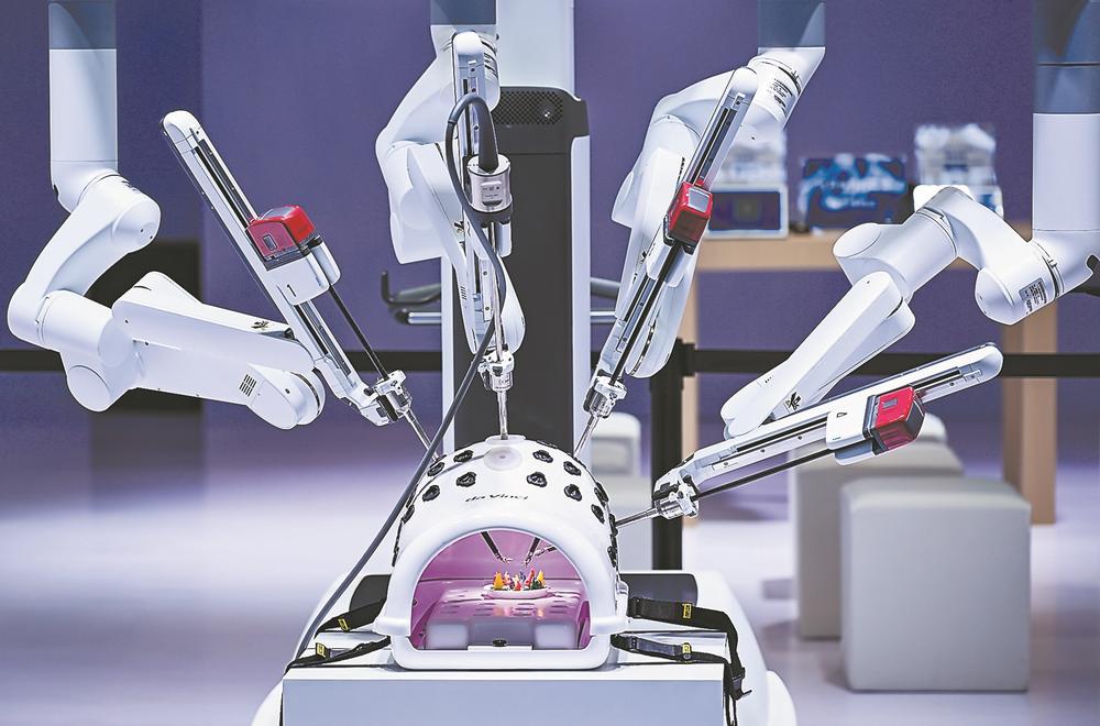 圖為14日在2025中國醫學裝備展覽會拍攝的手術機器人演示現場。 新華社