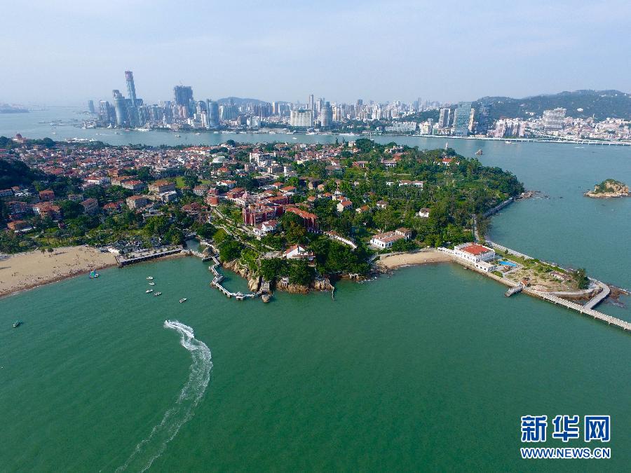 空中俯瞰,鼓浪嶼歷史風貌建筑與鷺江海峽對岸的現(xiàn)代建筑遙相輝映。新華社記者姜克紅攝 2017年7月8日,中國福建省鼓浪嶼在波蘭克拉科夫舉行的世界遺產(chǎn)大會上獲準列入世界文化遺產(chǎn)名錄。鼓浪嶼隸屬廈門市,是廈門島西南隅一座面積1.8839平方公里的小島。