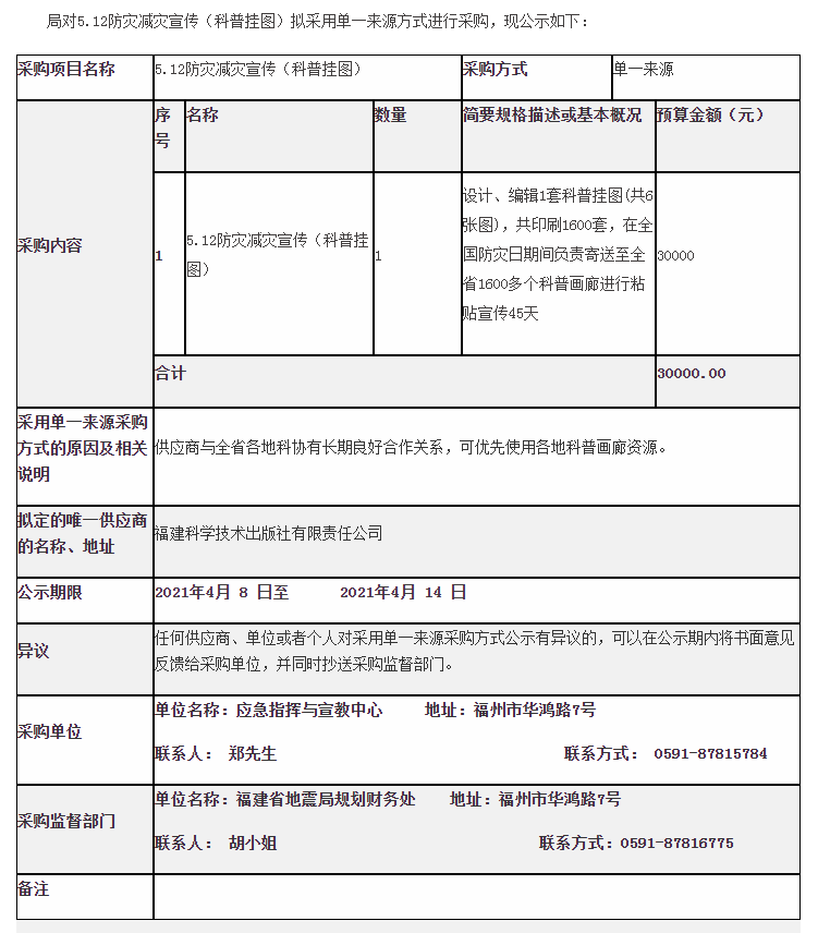 應急指揮與宣教中心5.12防災減災宣傳(科普掛圖)采購公示