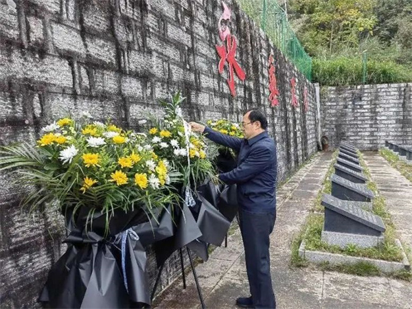 ▲在連江官坂烈士集中安葬區(qū)向烈士敬獻花籃