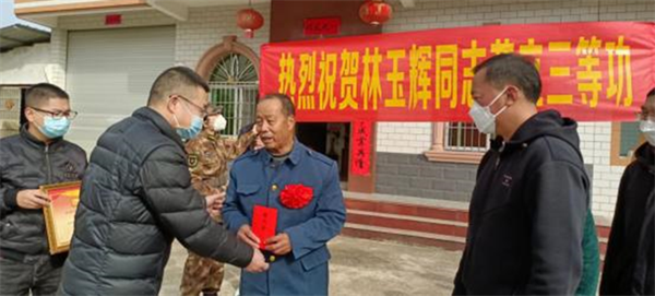 1月5日,長汀縣退役軍人事務局、縣人武部組成慰問組,集中開展為立功受獎現役軍人家庭送立功喜報活動,為他們送上立功喜報及慰問金。 1月5日上午,軍地送喜報慰問組一路熱熱鬧鬧將喜報和獎金、慰問金送到被部隊表彰為戰備訓練三等功的林玉輝家中,與村民們共同見證功臣之家的榮耀時刻。伴隨著喜慶的鑼鼓聲,送喜報慰問組捧著立功喜報,走進林玉輝家中,為家屬戴上大紅花,向其表示衷心的祝賀。“孩子在部隊立功,我們全家人感到非常光榮和自豪。感謝你們送來這份驚喜!”林玉輝家人高興地說。 當天上午,榮獲“三等功”的現役軍人俞登祿家人頭攢動,村民們早早就在家門口守候著送喜報隊伍的到來。軍地領導一起圍坐在俞登祿家屬身邊聊天,退役軍人事務局領導對俞登祿屢獲戰功,為全縣人民爭光表示充分肯定,感謝家屬為祖國、部隊培養了優秀的軍事人才,勉勵他在部隊戒驕戒躁、再立新功。俞登祿父親表示,孩子能有今天的成績,離不開地方黨委、政府的關心關懷,離不開部隊的精心培養,今后將繼續鼓勵兒子扎根執勤工作崗位、安心服役,發揚不怕苦、不畏難、敢拼搏的精神,刻苦訓練,再立新功,為家鄉增光添彩。 鯉城區