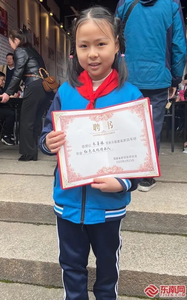 座談會現場,研究會為施程小學三年級學生朱墨臻頒發紅色文化傳承人聘書。 朱墨臻是新四軍駐福州辦事處舊址最小的講解員。她的太姥爺曾是一名新四軍,在她七八歲的時候,奶奶就會和她說太姥爺參與革命和國家建設的故事,讓她萌發了對紅色文化的興趣。去年,朱墨臻在參觀新四軍駐福州辦事處舊址時,受邀成為志愿講解員的一員。 據了解,新四軍駐福州辦事處舊址還將在5月舉辦“長征中的福建子弟兵”展覽,推動黨史學習教育常態化、長效化。 |
