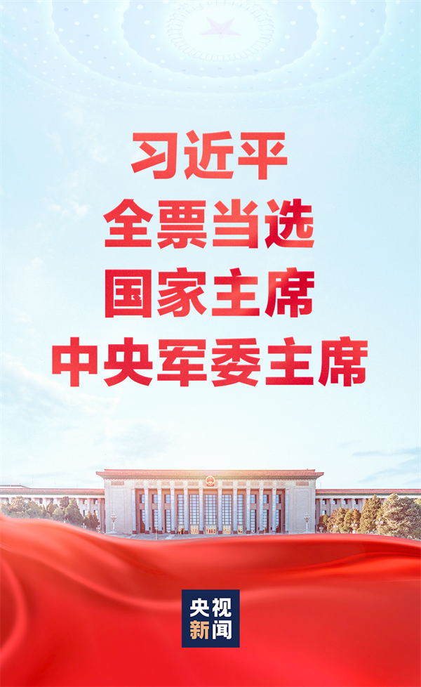 習近平全票當選為中華人民共和國主席、中華人民共和國中央軍事委員會主席。