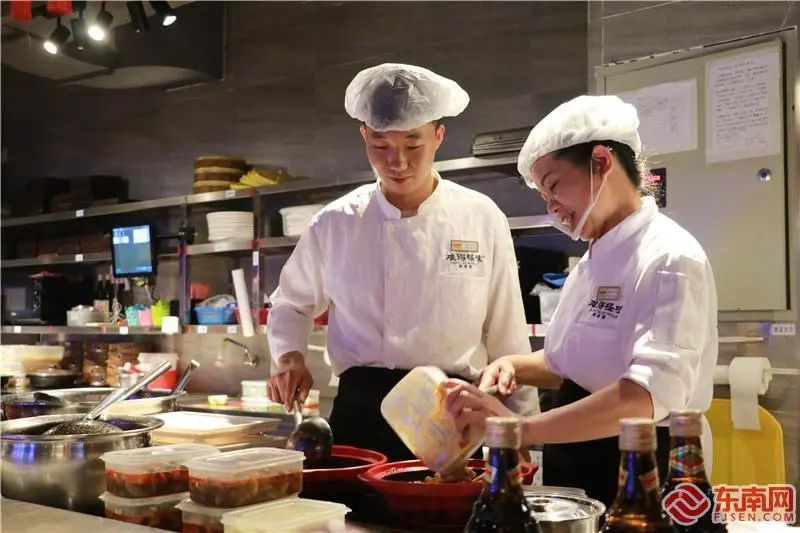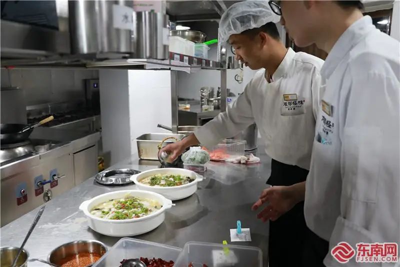 3月21日,在三明市新都匯難得怪味后廚,林聯炳正跟著上官廚師長學習打荷的內容,準備好小料、盤子、配菜……林聯炳可“大有來頭”,他是來自三明大田縣的退役軍人。參訓的第四天,他就來到“戰場”開始實戰訓練。他告訴記者,“參加這次培訓,確實更加明確了自己未來的就業方向,對未來也更加有信心了……”