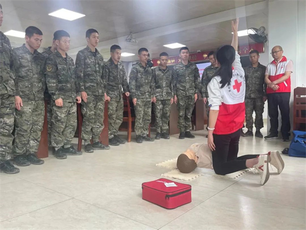 龍巖市紅十字會、龍巖市雙擁辦認真籌劃,精心準備培訓內容,采取普及知識、理論講解和現場演練相結合的方式寓教于學、寓練于學,為官兵送上急救技能知識大餐。 活動中,培訓老師詳細講解了紅十字運動起源、心肺復蘇、AED使用、氣道異物梗阻急救和戰場創傷救護等知識,幫助官兵掌握基礎的應急救護技能。在互動練習中,官兵們學習熱情高、氣氛活躍,與老師互動頻繁,效果明顯。