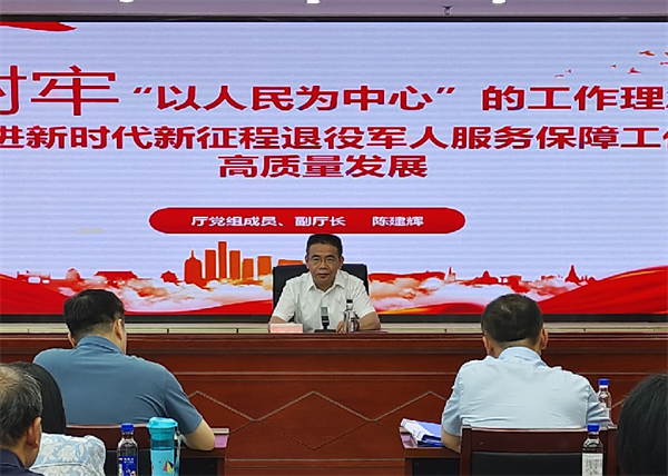 為深入推進主題教育開展,7月12日下午,省退役軍人事務廳黨組成員、副廳長陳建輝圍繞“樹牢‘以人民為中心’的工作理念 推進新時代新征程退役軍人服務保障工作高質量發展”主題,為廳思想政治和權益維護處(政策法規處)、規劃財務處、軍休管理處、省退役軍人服務中心全體黨員干部上了一堂主題鮮明的專題黨課。