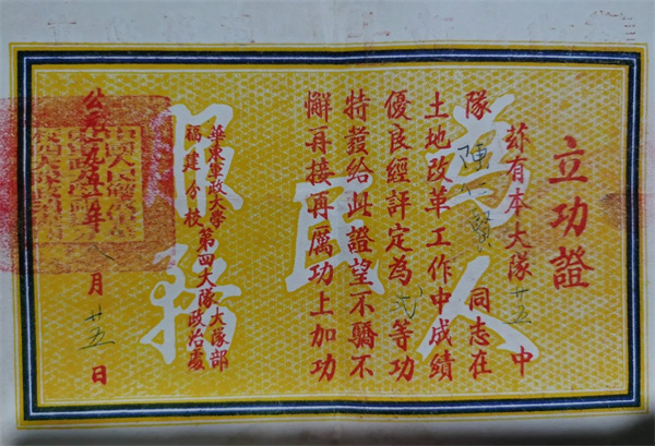 福州市馬鞍軍休所陳仁賢入選的紅色珍藏品《土地改革工作二等功獎狀》,見證了陳仁賢同志在土地改革工作中,不計個人得失,發揚艱苦奮斗、愛崗敬業、甘于奉獻的“螺絲釘”精神。