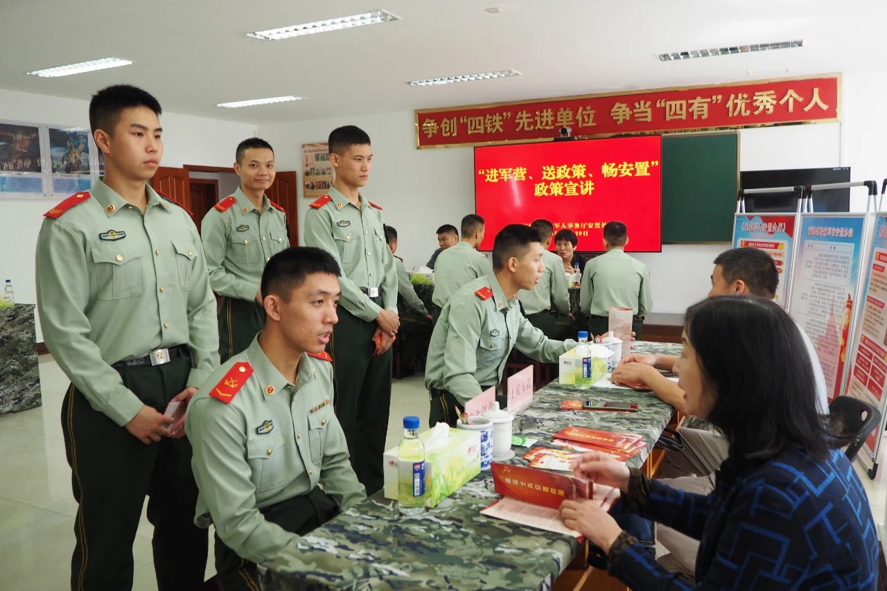 為幫助部隊(duì)官兵詳細(xì)了解《退役軍人安置條例》,準(zhǔn)確掌握退役軍人安置就業(yè)政策,近日,省退役軍人事務(wù)廳安置就業(yè)處、省退役軍人人才開發(fā)中心業(yè)務(wù)骨干走進(jìn)武警駐閩部隊(duì),開展4場(chǎng)“送政策進(jìn)軍營(yíng)”活動(dòng)。