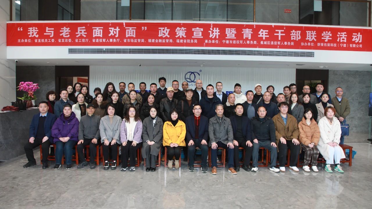 宣講活動(dòng)在當(dāng)?shù)剀妱?chuàng)企業(yè),群策包裝科技(寧德)有限公司一樓會(huì)議室舉行,分為“面對(duì)面政策宣講”“送金融服務(wù)進(jìn)軍創(chuàng)企業(yè)”“政企座談”三個(gè)環(huán)節(jié)。 在“面對(duì)面政策宣講”環(huán)節(jié),軍創(chuàng)企業(yè)家林杰禹分享自身創(chuàng)業(yè)歷程感悟,激勵(lì)大家珍惜黨和國(guó)家的關(guān)心關(guān)愛(ài),始終牢記初心使命、永葆軍人本色,努力在經(jīng)濟(jì)社會(huì)建設(shè)大潮中實(shí)現(xiàn)自我價(jià)值。省退役軍人服務(wù)中心青年干部楊鈺雯,傳達(dá)學(xué)習(xí)了全國(guó)、全省退役軍人工作會(huì)議精神,宣講了我省促進(jìn)退役軍人就業(yè)創(chuàng)業(yè)的相關(guān)政策;省發(fā)改委民營(yíng)經(jīng)濟(jì)發(fā)展促進(jìn)中心青年干部張曉和寧德發(fā)改委營(yíng)商環(huán)境與信用建設(shè)中心青年干部黃健,宣講了促進(jìn)省市兩級(jí)民營(yíng)經(jīng)濟(jì)發(fā)展相關(guān)政策;省市場(chǎng)監(jiān)管局注冊(cè)審批處林倩倩,宣講了《促進(jìn)個(gè)體工商戶發(fā)展若干措施》中加大退役軍人創(chuàng)業(yè)支持相關(guān)政策;省稅務(wù)局政策法規(guī)處林鈺彤,宣講了退役軍人創(chuàng)辦經(jīng)營(yíng)主體稅收相關(guān)政策;寧德市工信局中小企業(yè)科青年干部韋曉莉,宣講了“專(zhuān)精特新”企業(yè)申報(bào)相關(guān)政策;寧德金融監(jiān)管分局金融消保科青年干部林景華,宣講了退役軍人金融服務(wù)相關(guān)政策。 在“送金融進(jìn)軍創(chuàng)企業(yè)”環(huán)節(jié),當(dāng)?shù)刂袊?guó)銀行、興業(yè)銀行、海峽銀行3家機(jī)構(gòu)分別介紹了針對(duì)軍創(chuàng)企業(yè)的專(zhuān)屬金融產(chǎn)品、服務(wù)方案與優(yōu)惠政策,主動(dòng)為企業(yè)發(fā)展提供資金保障,靠前幫助軍創(chuàng)企業(yè)解決融資難題。 在“政企座談”環(huán)節(jié),省直機(jī)關(guān)青年干部、當(dāng)?shù)叵鄳?yīng)部門(mén)代表、銀行機(jī)構(gòu)人員,與軍創(chuàng)企業(yè)家一起,圍繞政策落實(shí)、企業(yè)需求、金融對(duì)接等問(wèn)題展開(kāi)深入交流、共謀發(fā)展。軍創(chuàng)企業(yè)家和個(gè)體工商戶踴躍提問(wèn)、建言獻(xiàn)策;省直機(jī)關(guān)青年干部認(rèn)真傾聽(tīng)、耐心記錄,對(duì)能夠現(xiàn)場(chǎng)解答或協(xié)調(diào)解決的問(wèn)題,均現(xiàn)場(chǎng)聯(lián)合當(dāng)?shù)叵鄳?yīng)部門(mén)業(yè)務(wù)骨干給出針對(duì)性答復(fù)。 宣講活動(dòng)結(jié)束后,青年干部們參觀了群策包裝科技(寧德)有限公司的生產(chǎn)車(chē)間和研發(fā)中心,深入了解企業(yè)的生產(chǎn)經(jīng)營(yíng)情況與創(chuàng)新成果,進(jìn)一步深化對(duì)軍創(chuàng)企業(yè)的認(rèn)識(shí)。當(dāng)天下午,省直機(jī)關(guān)青年干部還來(lái)到駐地海軍某部,與部隊(duì)官兵開(kāi)展聯(lián)學(xué)共建活動(dòng)。 此次“我與老兵面對(duì)面”宣講暨青年干部聯(lián)學(xué)活動(dòng),由省退役軍人事務(wù)廳牽頭,省直機(jī)關(guān)工委、省發(fā)改委、省工信廳、省市場(chǎng)監(jiān)管局、福建金融監(jiān)管局、福建省稅務(wù)局聯(lián)合主辦,寧德市退役軍人事務(wù)局、蕉城區(qū)退役軍人事務(wù)局承辦,群策包裝科技(寧德)有限公司協(xié)辦。省直機(jī)關(guān)青年干部、當(dāng)?shù)叵鄳?yīng)單位業(yè)務(wù)骨干、寧德市軍創(chuàng)企業(yè)和退役軍人個(gè)體工商戶代表、銀行業(yè)務(wù)骨干等30余人參加。