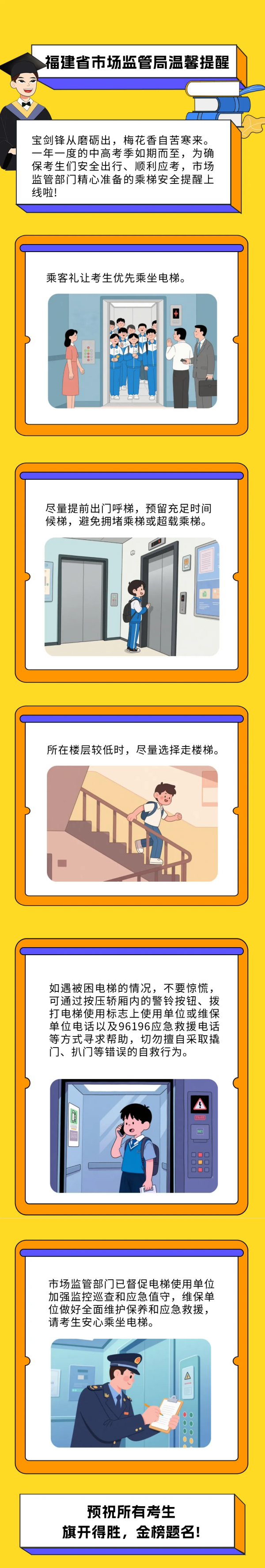 市場(chǎng)監(jiān)管這份提醒,助考生安全乘梯“趕考”無憂!