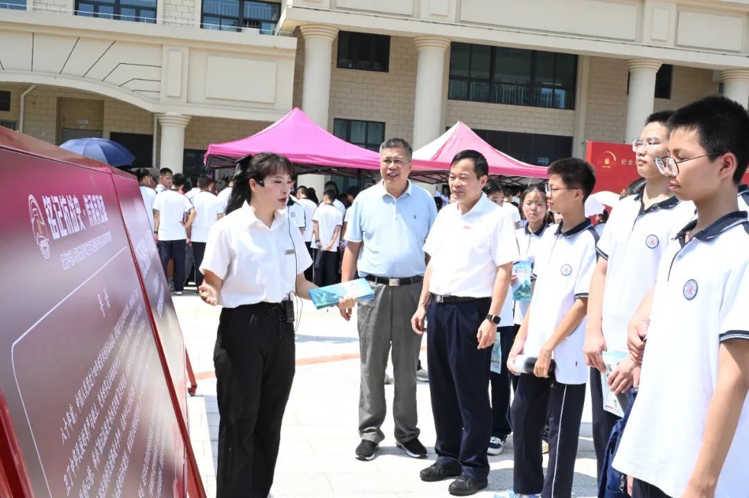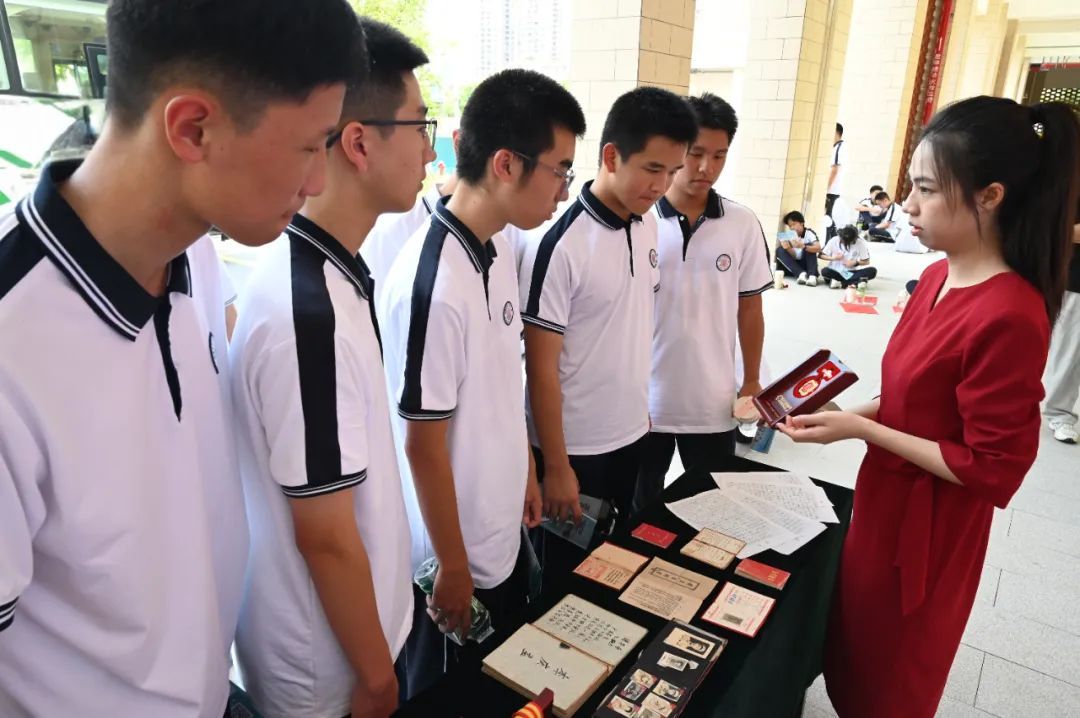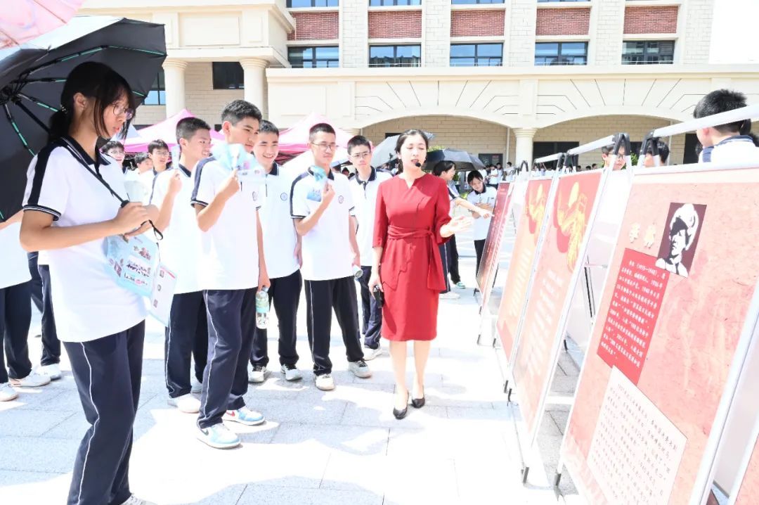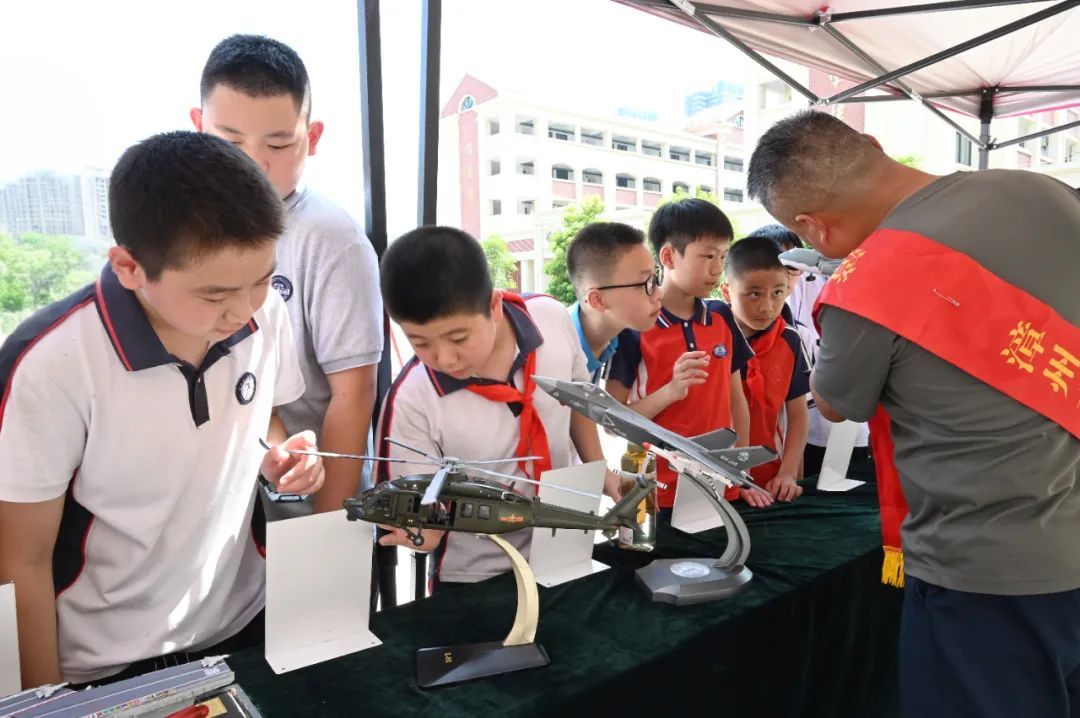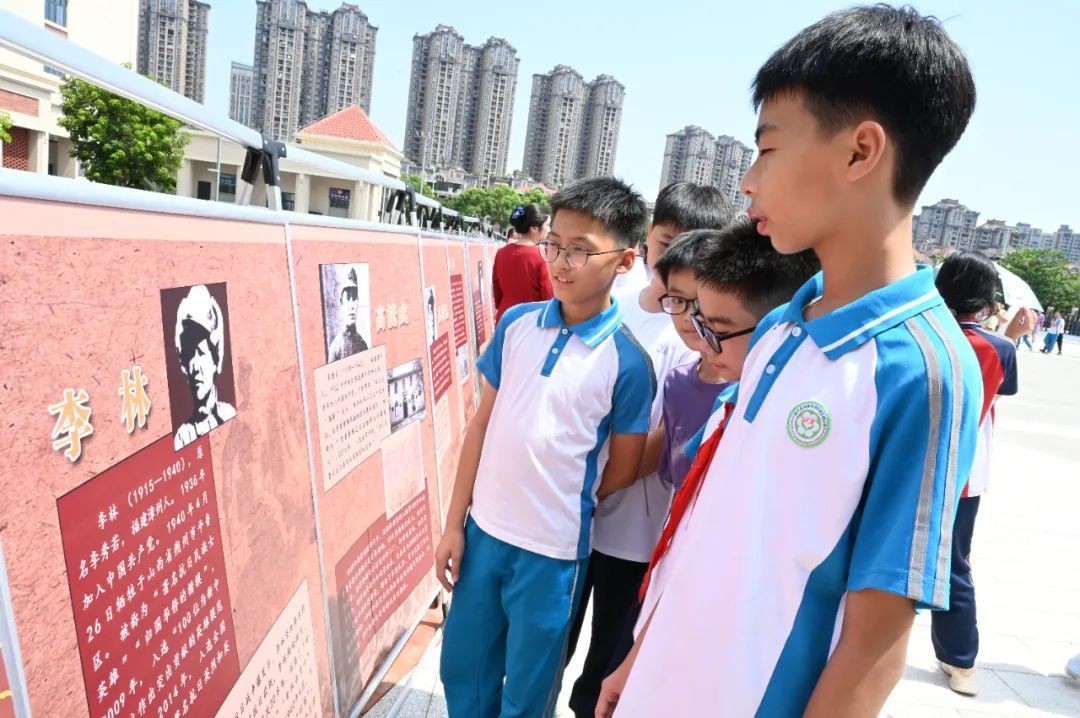操場(chǎng)兩側(cè)排列著不同主題的展區(qū)與體驗(yàn)項(xiàng)目,學(xué)生們不再是坐在禮堂里被動(dòng)聽(tīng)講,而是走進(jìn)一個(gè)個(gè)情境之中,成為歷史的親歷者、感受者和發(fā)問(wèn)者。 不遠(yuǎn)處的抗戰(zhàn)英烈事跡展區(qū),十塊圖文展板靜靜矗立,呈現(xiàn)全國(guó)及漳州本地抗戰(zhàn)英烈的感人故事。展板前,漳州市烈士紀(jì)念設(shè)施保護(hù)中心的講解員動(dòng)情講述,學(xué)生們凝神傾聽(tīng),一本本英烈事跡宣傳冊(cè)在他們手中傳遞。年輕的面孔與黑白照片中的英雄,仿佛在這一刻跨越時(shí)空相遇。