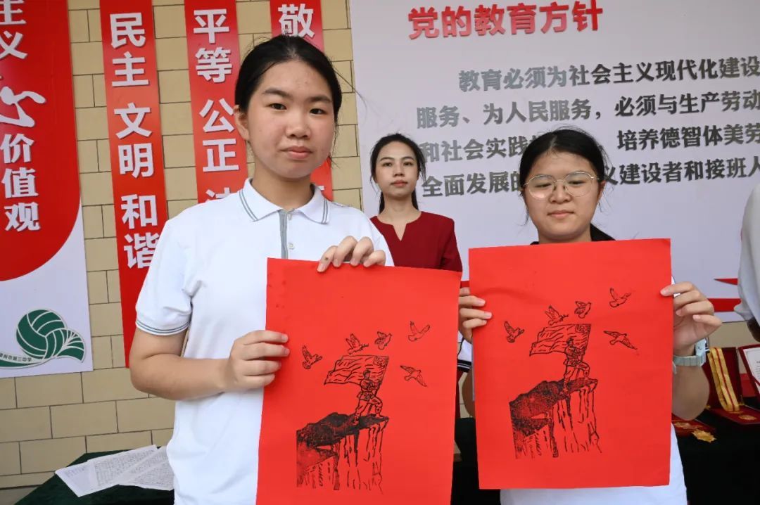 特別設(shè)置的抗戰(zhàn)主題木版年畫(huà)拓印體驗(yàn),由省級(jí)非遺傳承人現(xiàn)場(chǎng)教學(xué),同學(xué)們親手拓印,在一刷一印間將抗戰(zhàn)歷史與傳統(tǒng)文化深深烙印在心中。