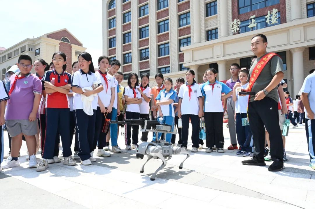 突然,“砰——”的一聲巨響回蕩在空中,瞬間點(diǎn)燃全場(chǎng)氣氛。烈日炎炎,卻絲毫阻擋不了大家的熱情。在軍事體驗(yàn)區(qū),男女學(xué)生們躍躍欲試,輪流肩扛模擬火箭筒進(jìn)行發(fā)射體驗(yàn)。緊接著,伴隨一陣“嗒嗒嗒”的模擬槍聲,一只機(jī)器狗穩(wěn)健地走入人群,靈活演示多種戰(zhàn)術(shù)動(dòng)作,立刻成為全場(chǎng)焦點(diǎn)。同學(xué)們紛紛好奇地圍上前去,伸手觸摸機(jī)器狗的“手”和“腳”,感受科技賦能?chē)?guó)防的獨(dú)特魅力。 “我剛才模擬了中國(guó)軍人打槍的環(huán)境,我拿了95式步槍?zhuān)矣X(jué)得它很重,我體會(huì)到了軍人的艱辛與不易。作為一名新時(shí)代青少年,我應(yīng)該認(rèn)真學(xué)習(xí),扛起新時(shí)代國(guó)家的重任?!备咭恍聦W(xué)黃靖航感慨道。