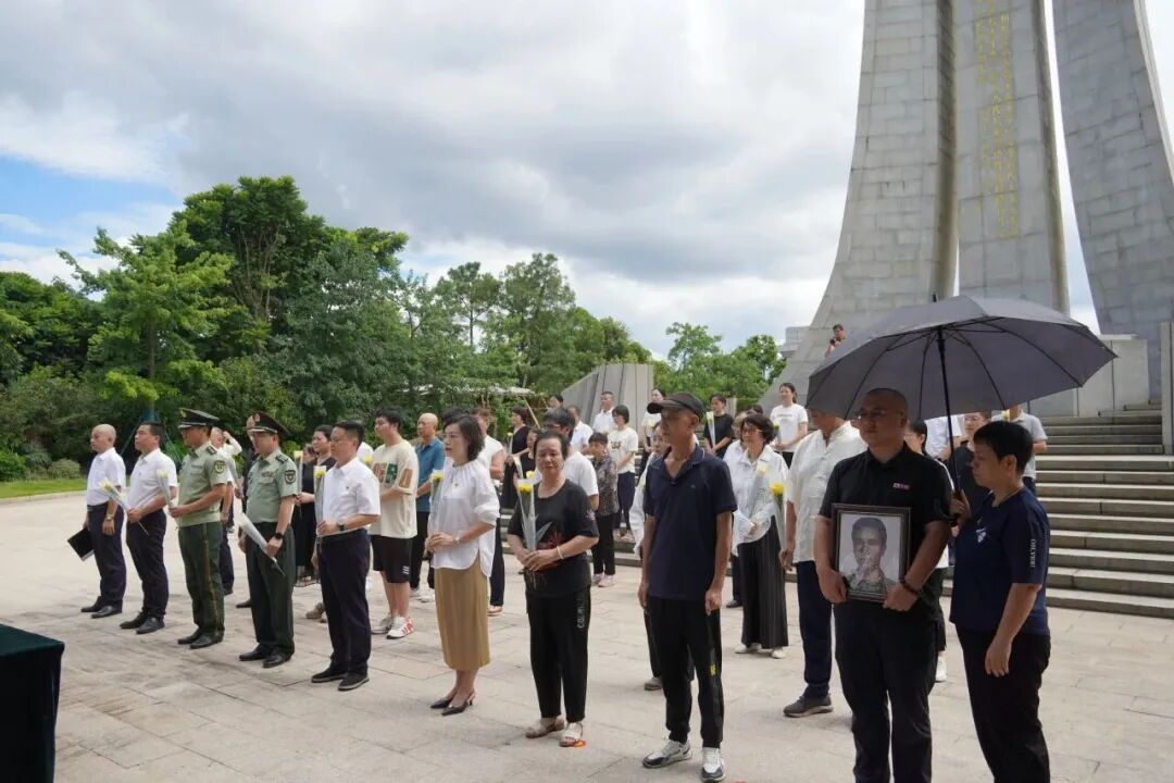 當日10時30分,福州市退役軍人事務局、福州海警局、福州市烈士紀念設施保護中心、臺江區(qū)人武部等單位工作人員以及林金官烈士親屬代表,在烈士英名墻紀念廣場列隊肅立。