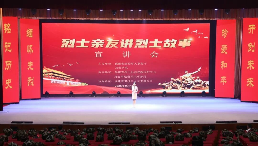 在“九一八”事變爆發(fā)94周年、并將迎來第12個(gè)國(guó)家烈士紀(jì)念日之際,9月18日上午,省退役軍人事務(wù)廳與龍巖學(xué)院舉行廳校共建協(xié)議簽約儀式,并開展“烈士親友講烈士故事”宣講活動(dòng),以實(shí)際行動(dòng)學(xué)習(xí)貫徹習(xí)近平總書記在紀(jì)念中國(guó)人民抗日戰(zhàn)爭(zhēng)暨世界反法西斯戰(zhàn)爭(zhēng)勝利80周年大會(huì)上重要講話精神,激勵(lì)干部群眾和青年學(xué)子“銘記歷史、緬懷先烈、珍愛和平、開創(chuàng)未來”。省退役軍人事務(wù)廳黨組書記、廳長(zhǎng)羅慶春,廳黨組成員、副廳長(zhǎng)蔡靜南和龍巖學(xué)院黨委書記鐘發(fā)亮、校長(zhǎng)鄒衛(wèi)東等廳校雙方領(lǐng)導(dǎo)出席,省退役軍人關(guān)愛基金會(huì)、省烈士紀(jì)念設(shè)施保護(hù)中心、龍巖市退役軍人事務(wù)局相關(guān)負(fù)責(zé)同志、六位烈士親友宣講員,以及龍巖學(xué)院師生代表1000多人參加活動(dòng)。