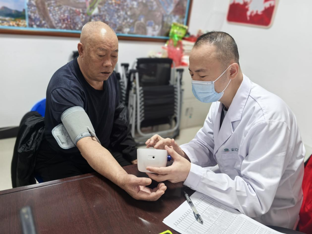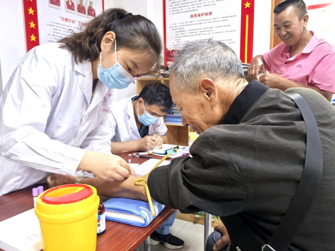20日,在蓮峰鎮蓮東社區集中診療點,優撫對象正在做抽血化驗