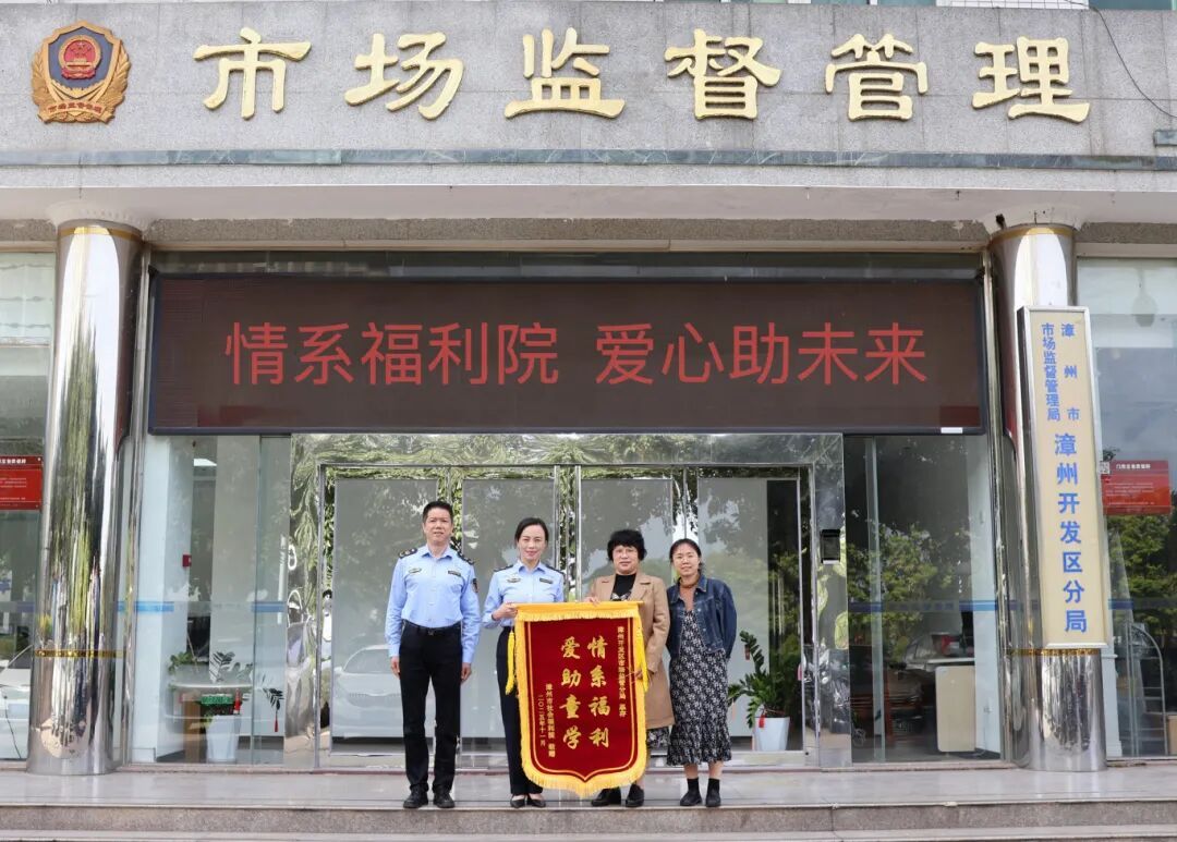 近日,漳州市社會福利院一行到漳州開發區市場監管分局與福建嘉榮食品有限公司,分別為這兩家單位送上印有“情系福利 愛助童學”和“嘉榮助學 情暖福利”的鮮紅錦旗,以此表達對市場監管分局搭建愛心橋梁以及嘉榮食品慷慨助學善舉的誠摯謝意。