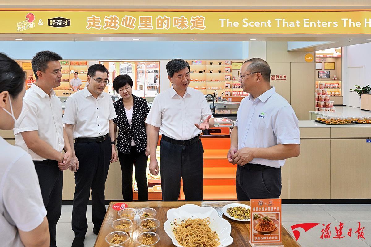 鄉村要振興,因地制宜選擇富民產業是關鍵。周祖翼走進沙縣醉有才小吃產業園,詳細詢問產品種類、產業運營、食品安全監管等情況,察看沙縣小吃研學課堂、觀光工廠,了解沙縣小吃發展歷程、制作工藝等。周祖翼說,沙縣小吃是富民特色產業。要加快創新發展,提高智能化自動化水平,強化技能培訓,開發更多新產品,推動小吃產業與文旅產業深入融合,滿足消費者多元化需求;筑牢食品安全防線,注重綠色環保,強化全鏈條質量管控,守護好人民群眾“舌尖上的安全”。尤溪縣梅仙鎮半山村,荷風送香、風景怡人。周祖翼走進村莊,沿著干凈整潔的村道邊走邊看,聽取基層黨建、文化特派員制度助力鄉村振興等工作情況,察看新知青藝術公社,與文化特派員、青年藝術家和大學生愉快交流。周祖翼勉勵大家,鄉村廣闊天地、大有可為。要安心扎根鄉村,引領更多年輕人參與美麗鄉村建設,不斷豐富村民精神文化生活,推動農文旅深度融合,為鄉村振興注入新的生機活力,加快奔向共富共美。